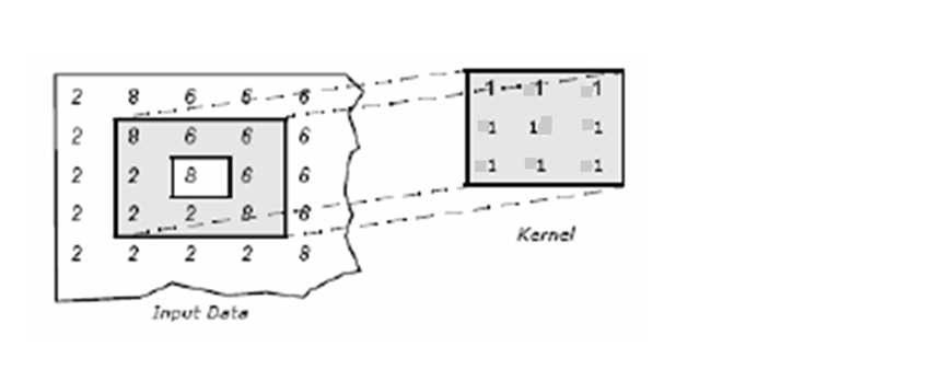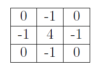 - I(i,j) = 5*I(i,j) - [ I(i-1,j) + I(i+1,j) + I(i, j-1)+ I(i, j+1)]