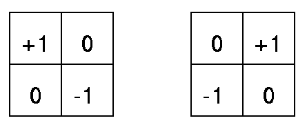 Haar特征是按照黑白像素区域,每一个黑色或白色区域都是一个包含了多个像素的像素块,像素块之间的差值决定了哪些块之间存在哪种类型的边缘,比如下图的第一个是描述的垂直边缘,第二个则表示水平边缘.