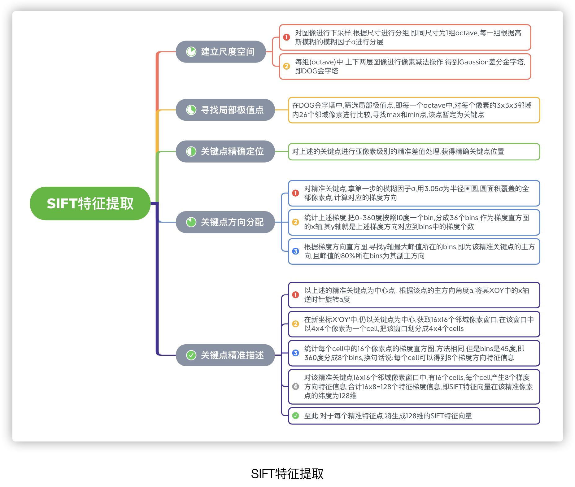 首先直接给出SIFT特征提取的流程图,然后对其逐个分析