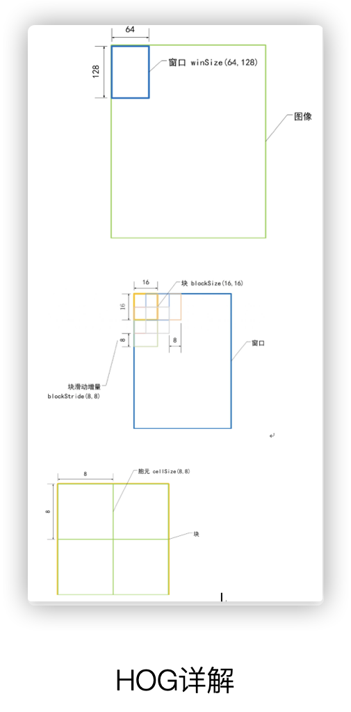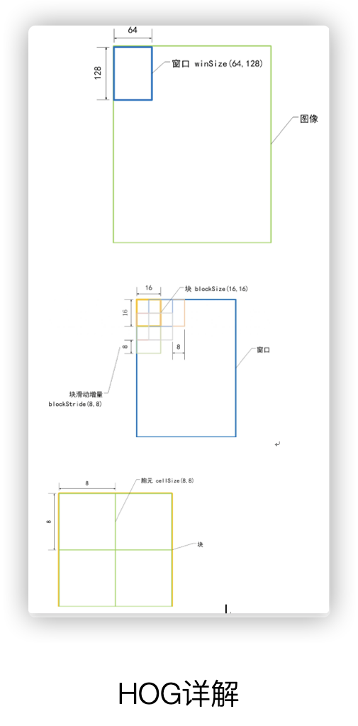在上述的hog类对象中,默认构造一个64*128,的DetectionWindow,16*16的block,8*8的cell,且每个cell的HOG中含9个bins