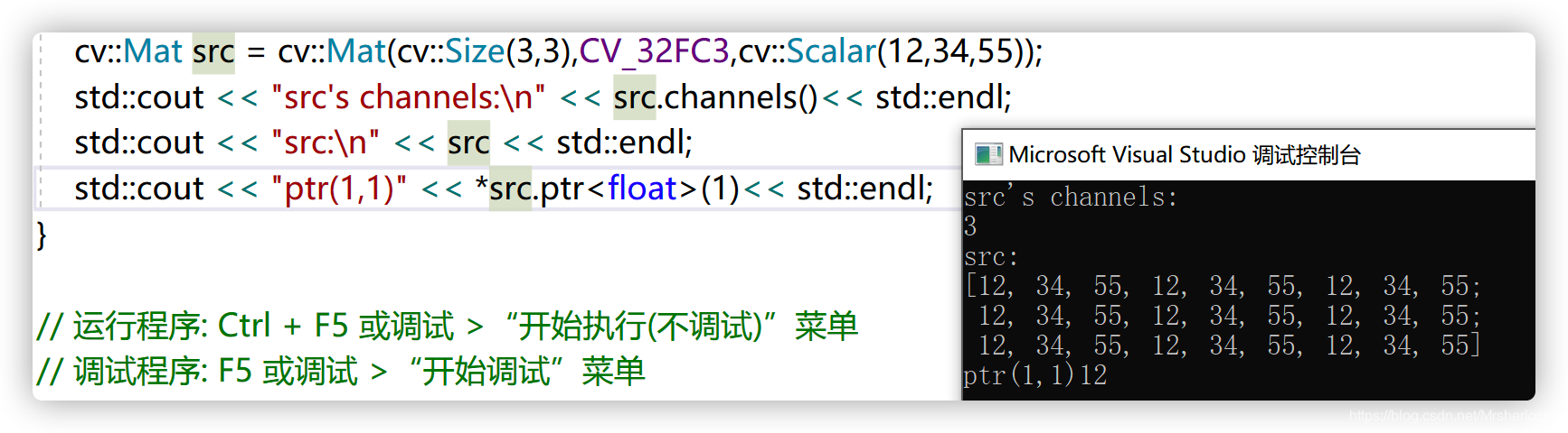 src.convertTo(dst, CV_32F); //把CV_8UC1,转换成CV_32F, 32位float数据
