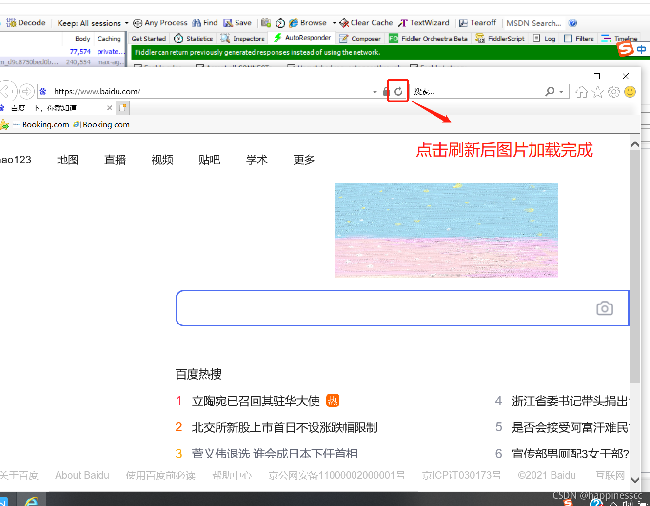 4. 打开百度页面,点击刷新
