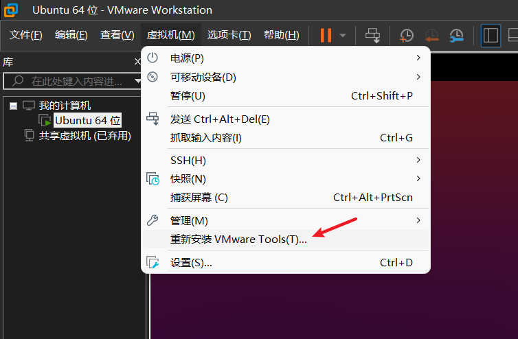 点击虚拟机(我的已经安装了,如果没安装显示的是