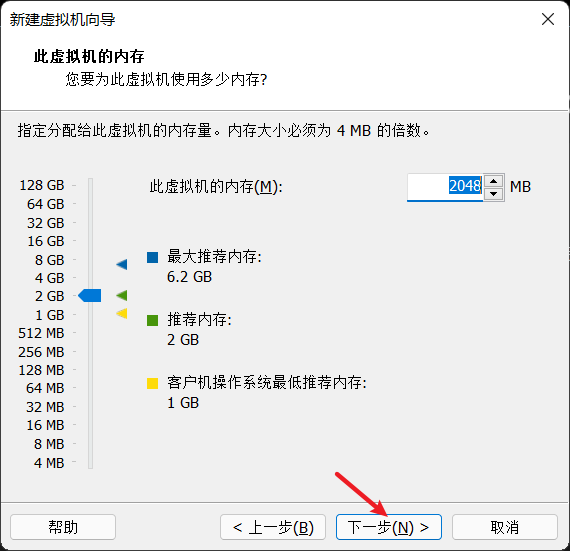内存分配不是越多越好,根据自己的计算机来定,我的计算机是8G的所以我用安装默认的2G,可以2-4G