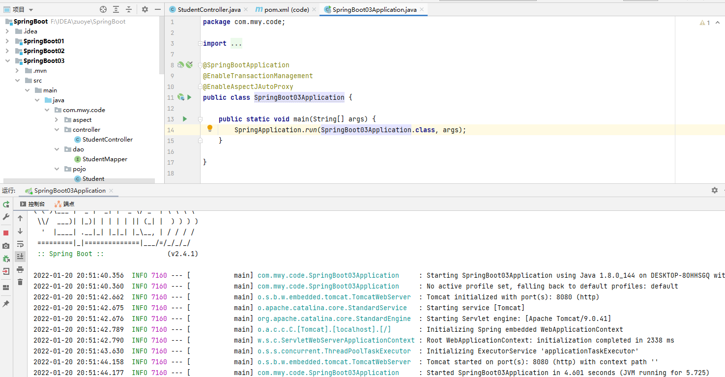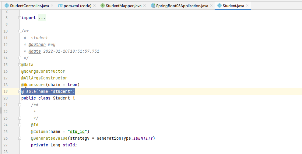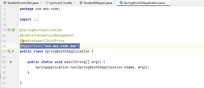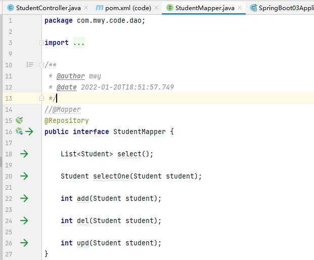 删除StudentMapper中的注解@mapper