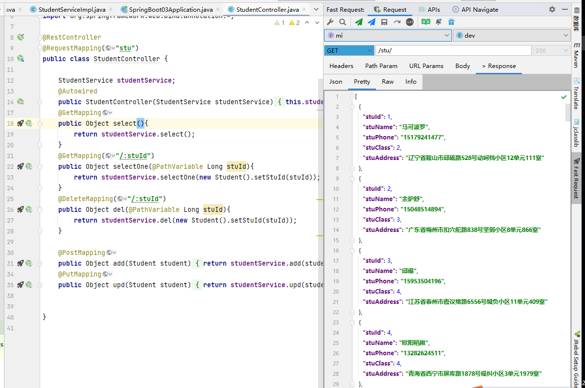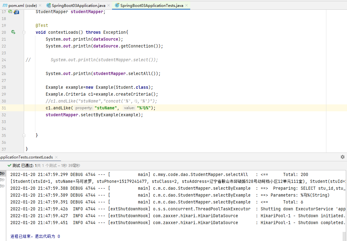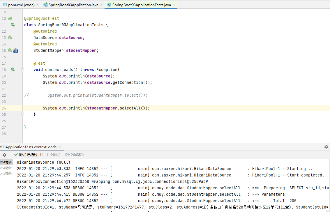 System.out.println(studentMapper.selectAll());