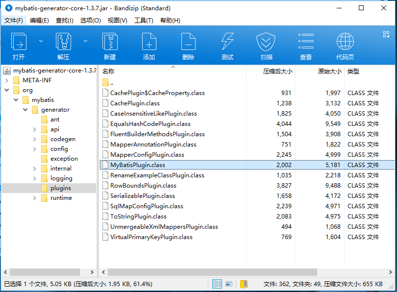 <plugin type="org.mybatis.generator.plugins.MyBatisPlugin">
