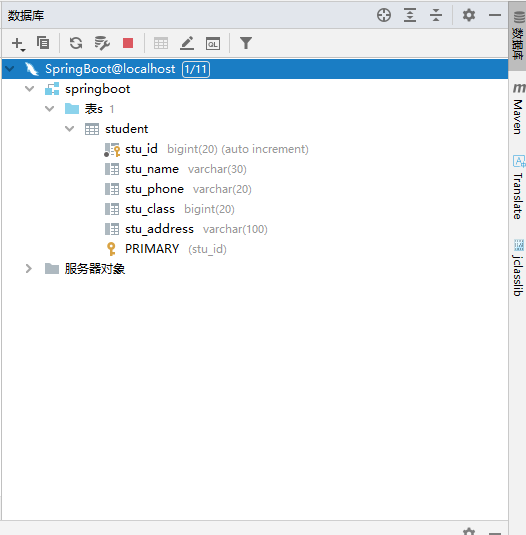 <table tableName="student" domainObjectName="Student">