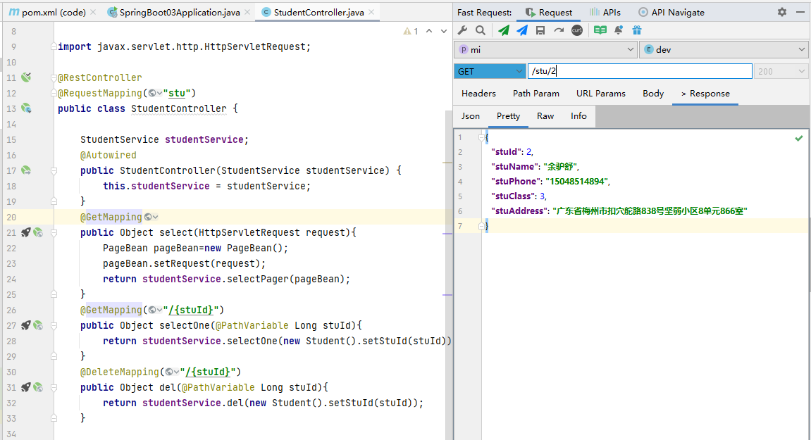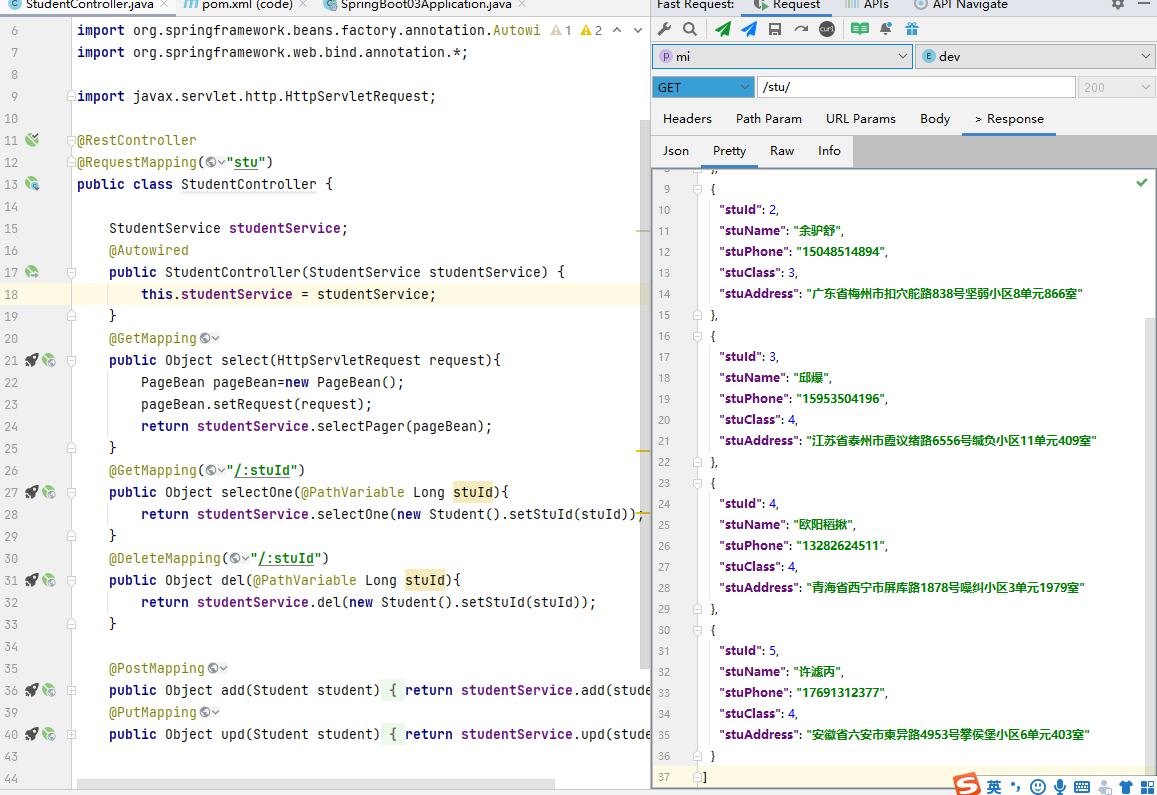 }⑤、修改StudentController