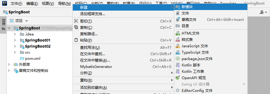 右键SpringBoot->新建->新模块