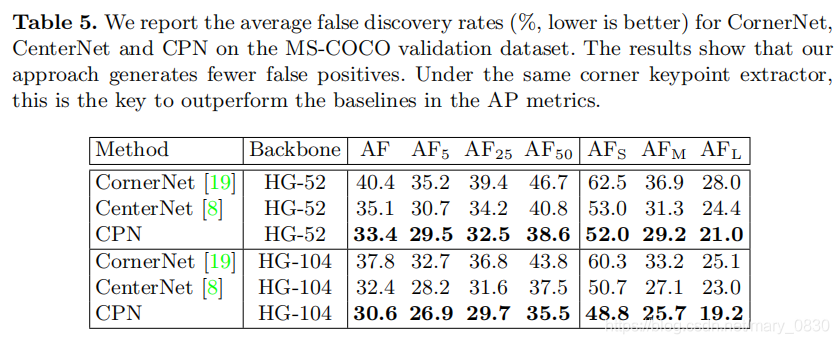 CPN-52和CPN-104报告的AF分别为33.4%和30.6%,低于直接使用baseline:CornerNet和CenterNet。