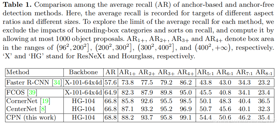 基于anchor的faster rcnn的召回率较低,实验发现,对于纵横比为5:1、8:1等情况下,召回率特别低,甚至比anchor-free的方法都低,原因是:这种纵横比没有预定义anchor。