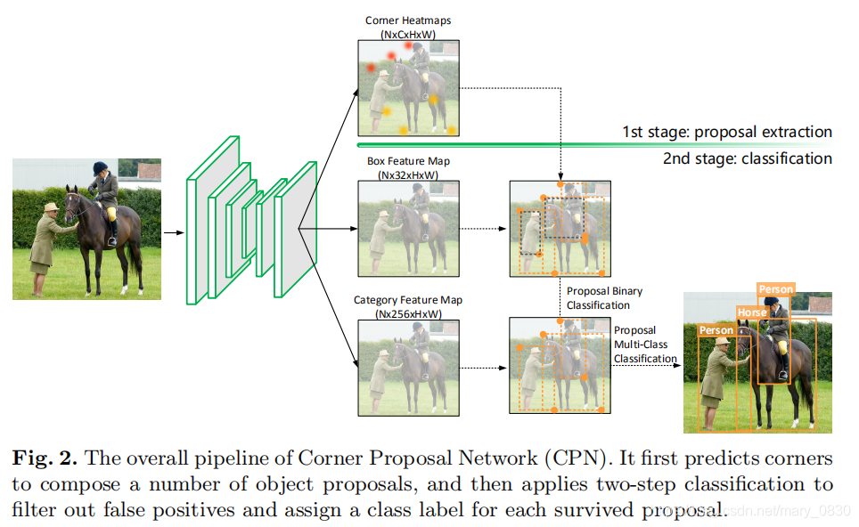 第一步,先预测角点,组成多个目标proposal;