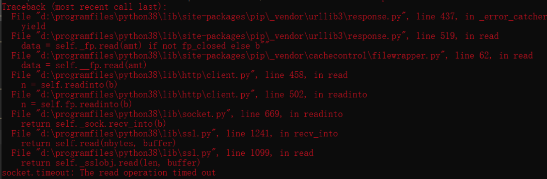 pip install XXX问题二:另外,如果安装超时报错,因为源不稳定造成的。