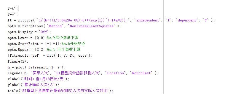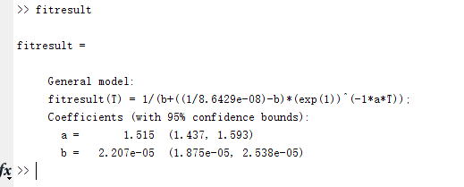 现在,我们再通过matlab拟合来计算参数a,b的取值,默认情况下是负无穷到正无穷,但是公式过于复杂的话,matlab的fit函数是拟合不出来的,因此我们需要调用“编辑器”曲线拟合工具栏