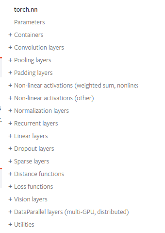 下面是torch.nn中包含的一些子模块