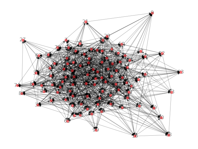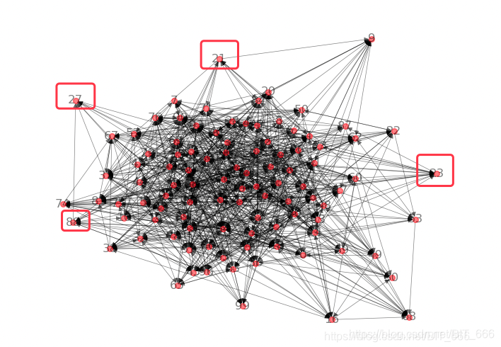 要降维的向量可以使用自己提前准备好的高维向量,也可以结合上一节 DeepWalk 生成的随机向量进行测试。上图为 DeepWalk 随机游走用到的图,其中节点数字标识该ID。