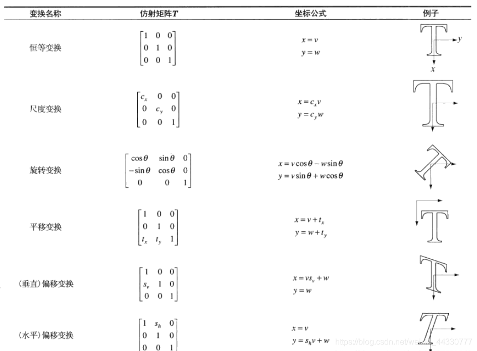 (3)仿射变换:对一组坐标点做尺度,旋转,平移或偏移