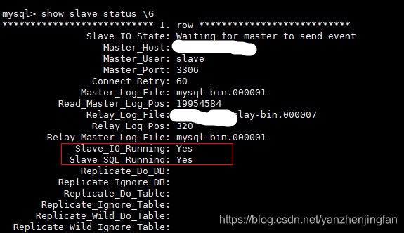 > start slave;7:查看从库是否同步上主库,红色框框两个yes说明成功了。