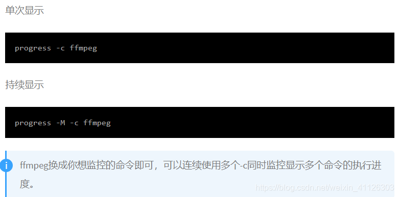 在没有进度显示的情况下,无法判断是正在执行还是卡死了,还是执行缓慢,progress命令很好的解决了这个问题。