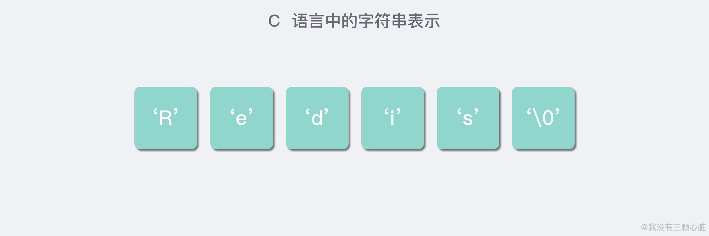 为什么不考虑直接使用 C 语言的字符串呢?因为 C 语言这种简单的字符串表示方式 不符合 Redis 对字符串在安全性、效率以及功能方面的要求。我们知道,C 语言使用了一个长度为 N+1 的字符数组来表示长度为 N 的字符串,并且字符数组最后一个元素总是 '\0'。(下图就展示了 C 语言中值为 “Redis” 的一个字符数组)