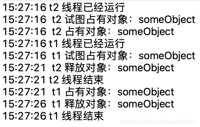 System.out.println( now()+this.getName()+ " 占有对象:someObject");