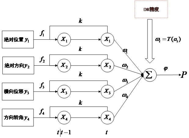 因此,融合算法有两个目的:第一,将不同技术的导航信息融合成唯一导航信息,使之可靠性高于未融合前的;第二,估计器件误差(陀螺仪零偏、测速仪尺度误差和导航误差等)。