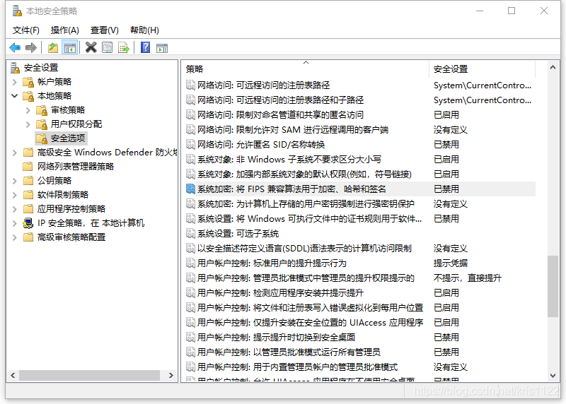 在右边的策略中,找到“系统加密:将FIPS算法用于加密 、哈希和签名”点击右键属性;