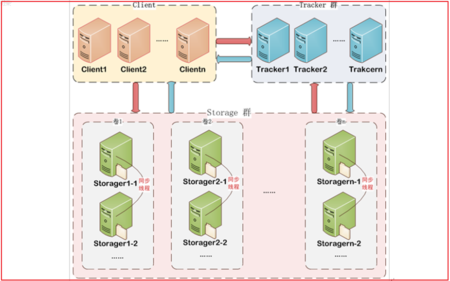 FastDFS 主要包括Tracker Server 和 Storage Server。Tracker server 是 FastDFS 文件系统的协调者,主要作用是负载均衡和调度选择 Storage server 进行文件存储。