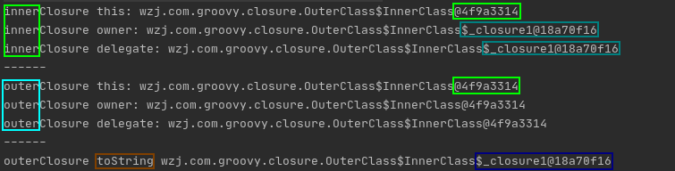 // 4)打印innerClosure闭包对应的this,owner,delegate对象和innerClosure对象的'toString方法'