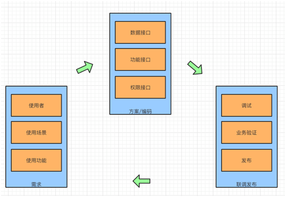 在定义了以上几点以后,再进行设计,编码调试,集成测试。最后,发布给客户去验证业务的可行性。