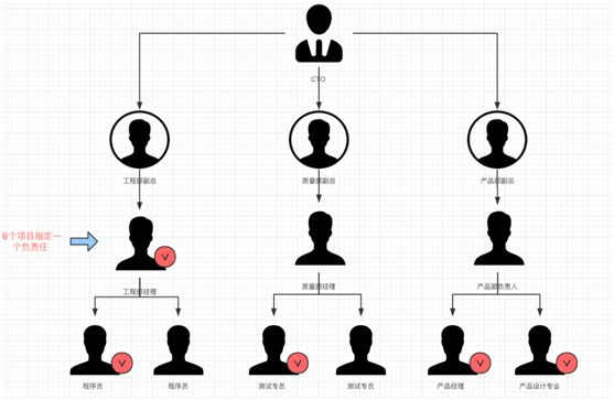 人员汇报的线路也从原来的部门经理换成了项目经理。而项目经理又对 CTO 直接负责,这样的结构相对简单,实用性较强,避开了职能型组织结构的一些缺点。