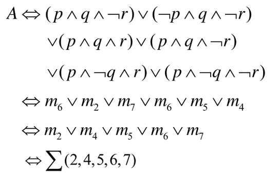 a.求A的等价范式;b.补充变元;c.消去重复的以及永假项;d.按角标顺序排列