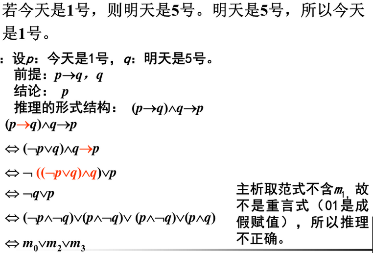 若为重言式,则称前提A1,A2,A3推出结论B的推理正确。