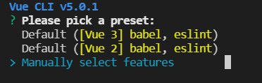 在当前项目目录中打开cmd输入:vue create 项目名称