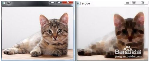因此,图像中的高亮区域逐渐减小,腐蚀可以使一个孤立的低亮噪音扩大化;可以使用物体的一些高亮度的关键细节丢失。