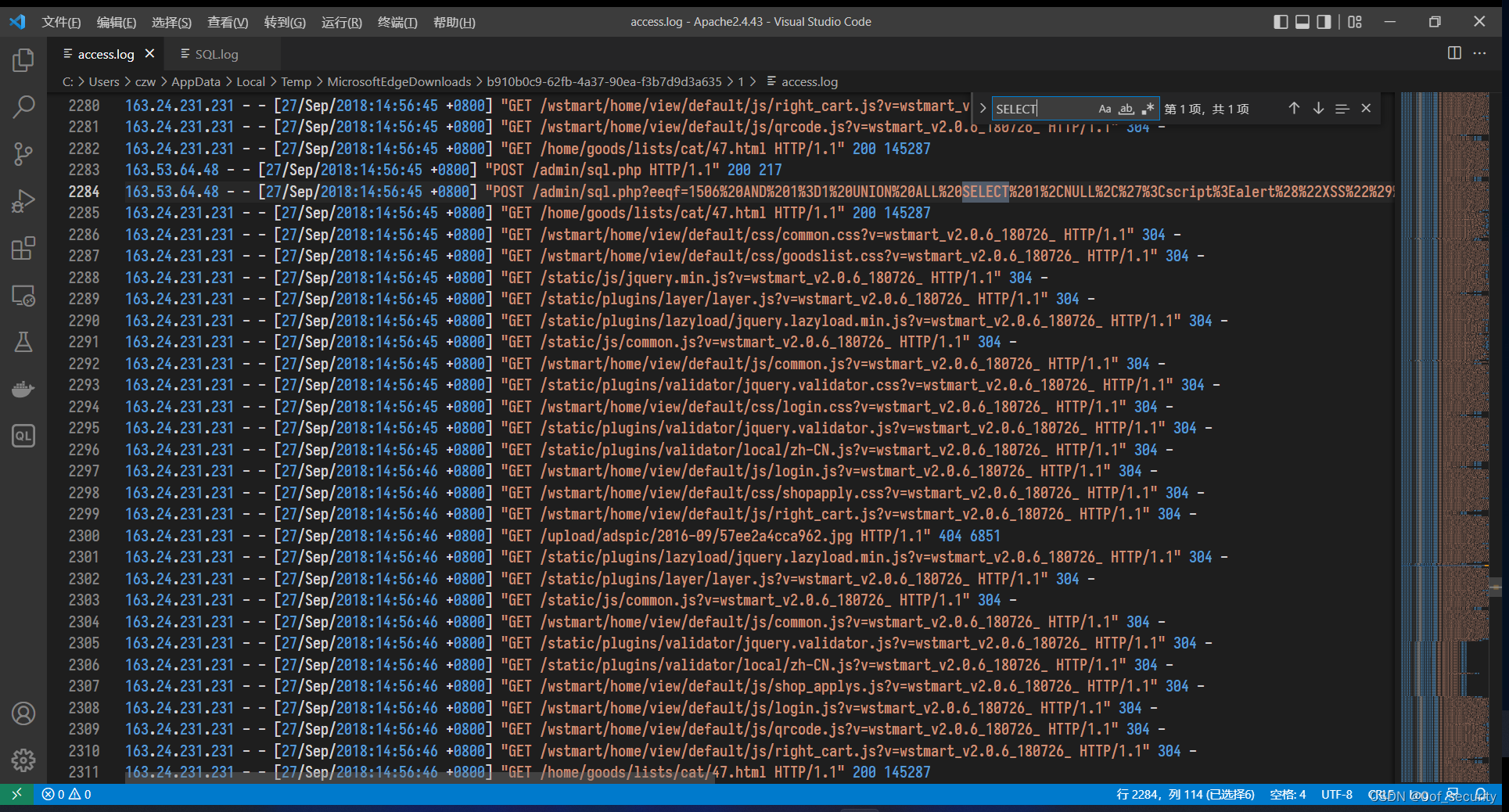 某公司安全工程师在维护网站时发现有人对网站进行了SQL注入,分析日志找到该IP地址。
