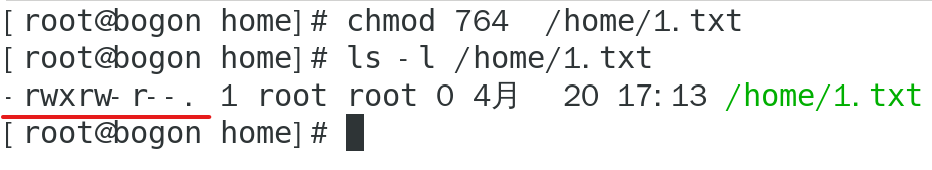 | 内容 | - | rw- | r-- | r-- | 1 | root | root | 12 | 4月12 20:48 | 1.txt |