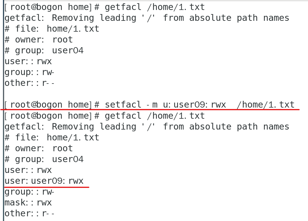 (1) setfacl(set file acl):设置某个目录或文件的ACL规定