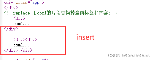 <!--根据 id的值,找到组件片段,进行替换(replace)当前片段,insert也如此-->