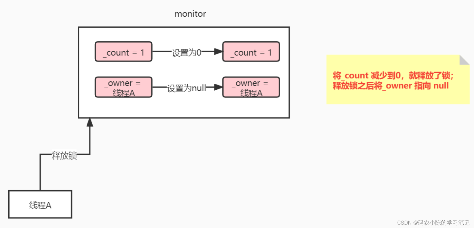 那反过来推测,释放锁的时候是不是将_count 设置为 0 , 将 _owner 设置为 null 就 OK了?