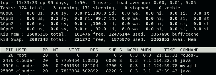 在执行top命令过程过程中,按 1可以看到所有逻辑cpu的资源占用情况