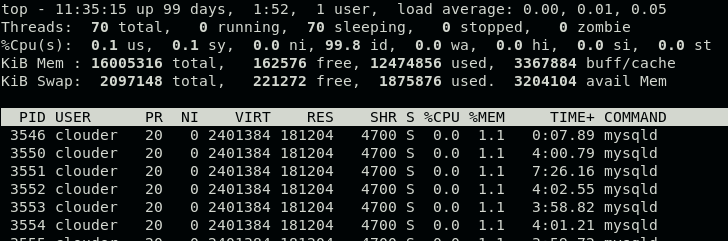 2、查看某个进程中各个线程的资源占用: top -Hp PID(对应的进程号)