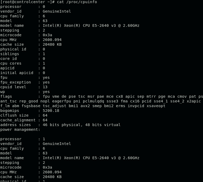2、cat /proc/cpuinfo 查看cpu详细信息,部分信息需要计算获取(该命令含单独每一个逻辑cpu的详细信息)