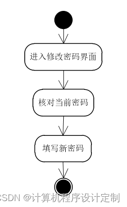 用户功能界面可对自己的密码进行修改。进入修改密码界面后核对当前密码,核对成功后填写新密码。修改密码活动图如下图所示。