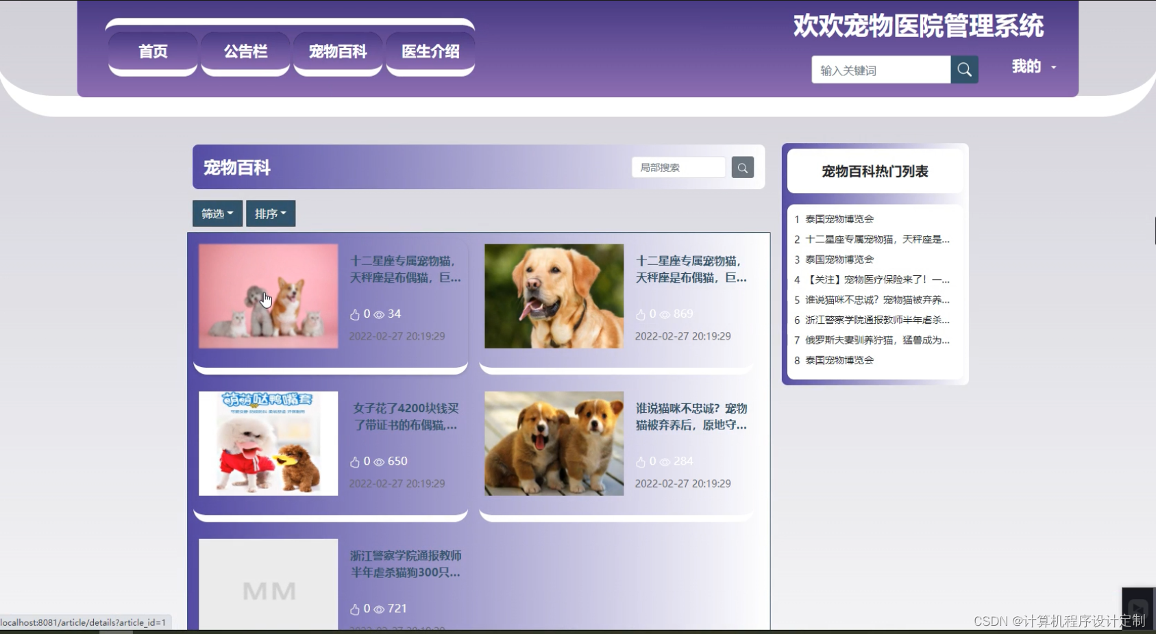 关键词:宠物医院管理系统,Springboot框架,MySQL数据库