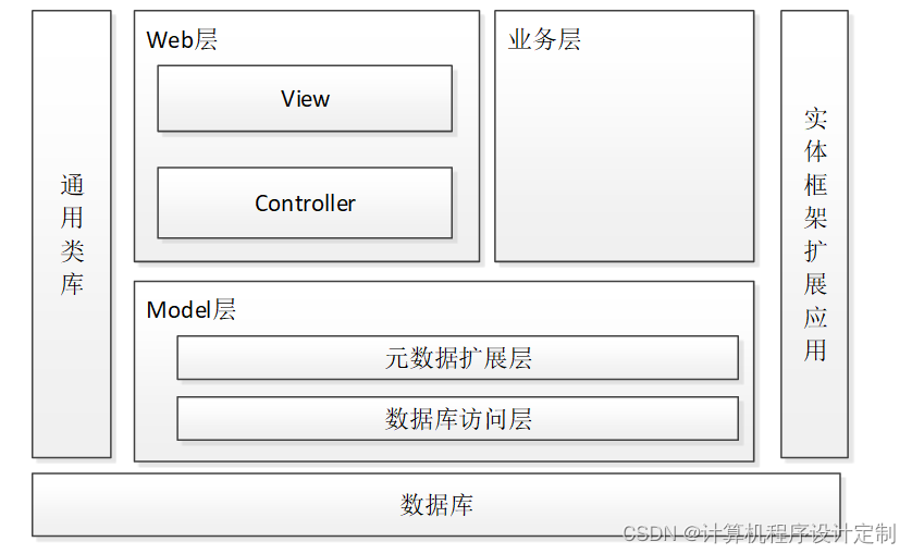 本系统架构设计主要分为可以3层,主要有Web层,业务层,Model层。其中web层还包括View层和Controller层,Model层包括元数据扩展层和数据访问层。