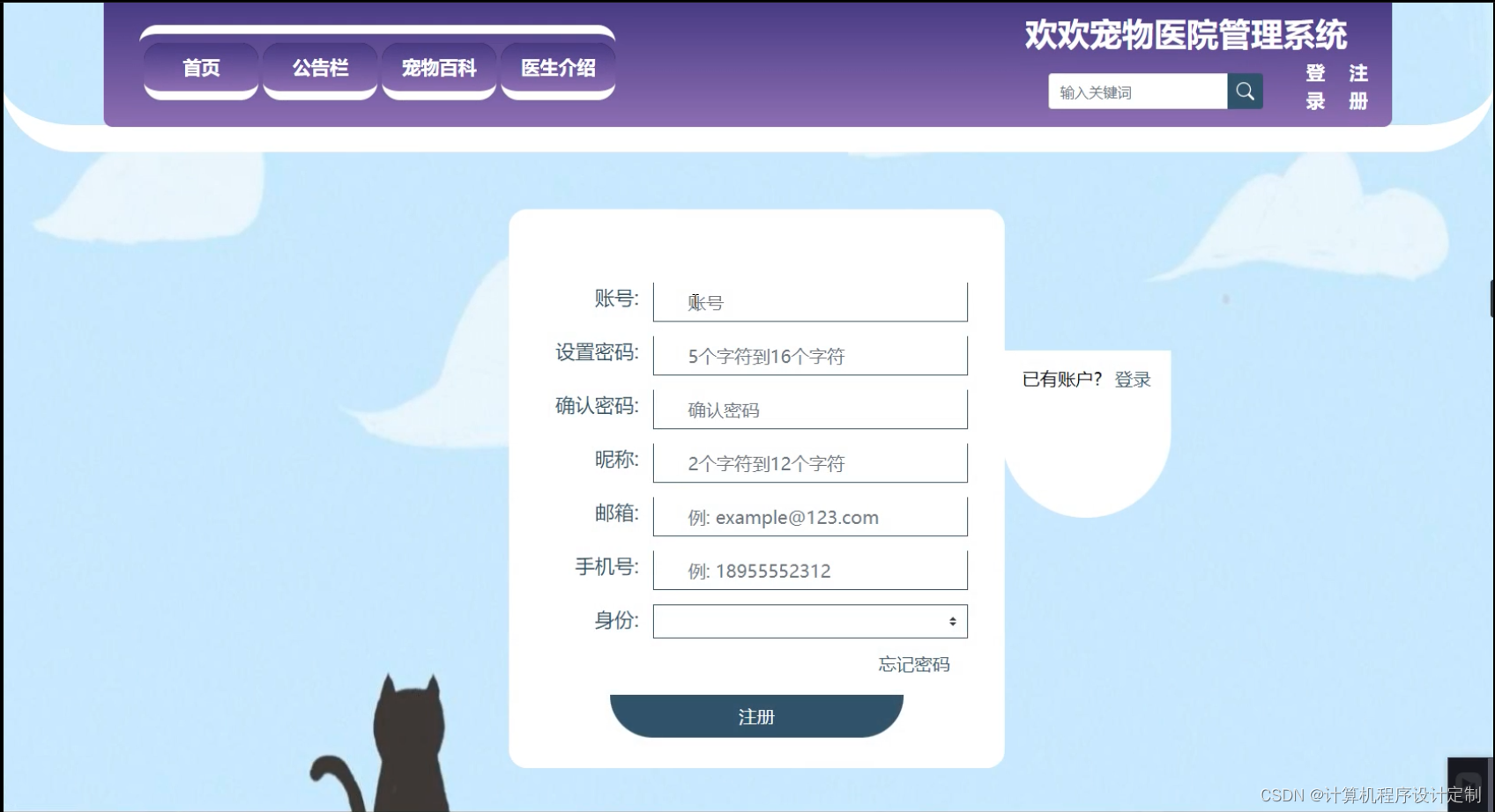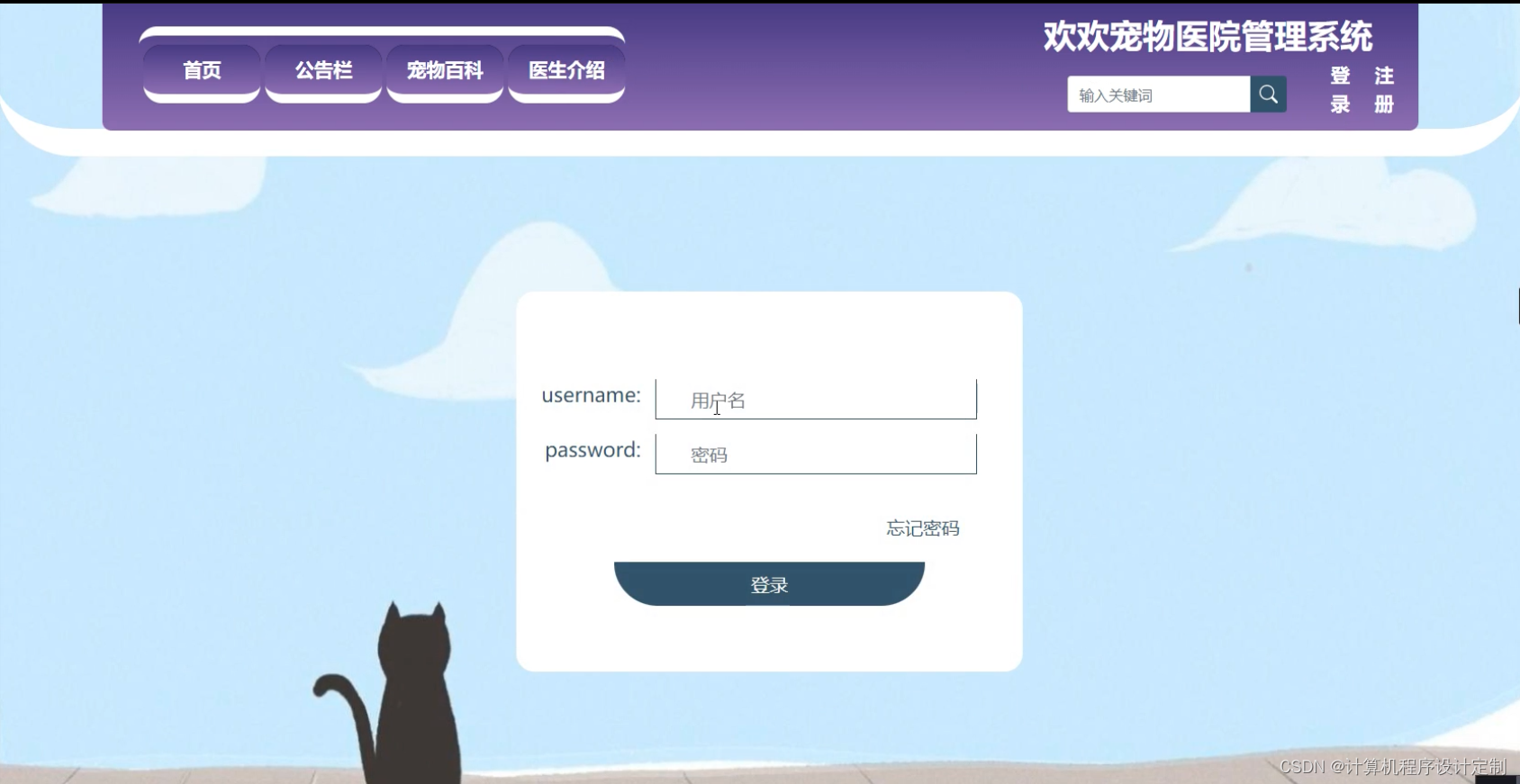 登录:使用欢欢宠物医院管理系统前是需要用户登录个人账号。