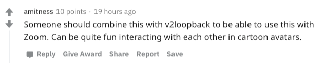 有人说,不如把这个与 v2loopback 结合一下,用在 Zoom 里,想必那些冗长的会议也没有那么难熬了……