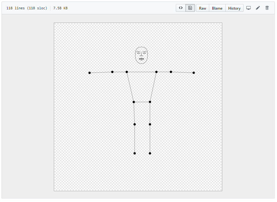 在 Pose Animator 中,曲面是由 SVG 文件中的 2D 矢量路径所定义。对于「骨骼」结构而言,Pose Animator 提供了预设定的骨骼层次表示形式,该表现形式同时也是基于 PoseNet 和 FaceMesh 的关键点而进行设计的。在输入的 SVG 文件中以及字符插图中指定了此骨骼结构的初始姿势,同时通过 ML 模型的识别结果来更新实时骨骼位置。